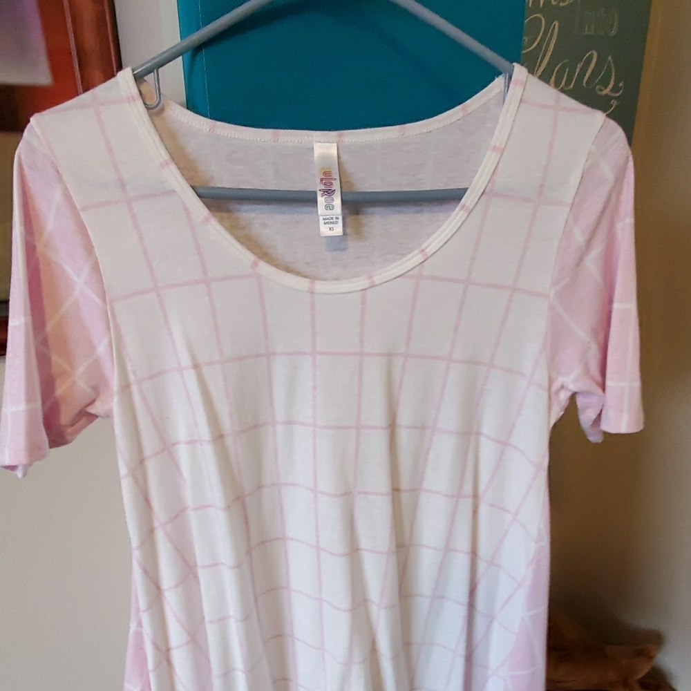 XS Lularoe perfect tee. Looks good with leggings. Pink/white