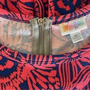Lularoe Amelia Blue and Coral Pattern Short Sleeve Dress, Size XL