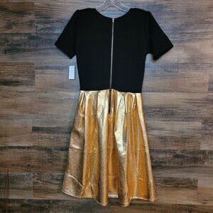 Lularoe Amelia Dress Elegant Collection S Rose Gold Metallic Black Pockets NWT