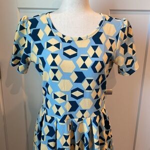 Lularoe Amelia NEW Zip Up Dress Large Yellow, Blue, & Navy