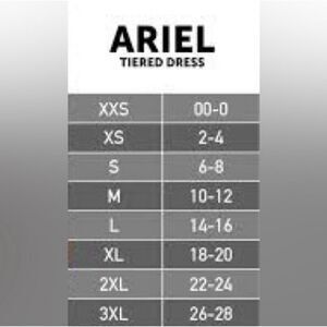 The Ariel is a three-tiered style dress with a rounded neckline, short sleeves, side seam pockets, and knee length.
