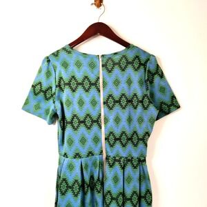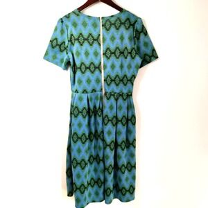 Lularoe Aztec Blue Green Dress L Artsy Pleated Flare Festival Minimalist Western