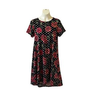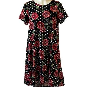 Lularoe Black White Polka Dots Red Roses Carly Swing Dress Medium High Low Hem