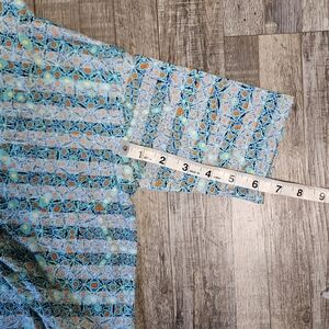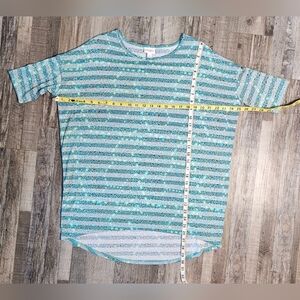 💜Lularoe Blouse Short Sleeve High Low Scoop Neck Green Multicolor size S 💙