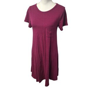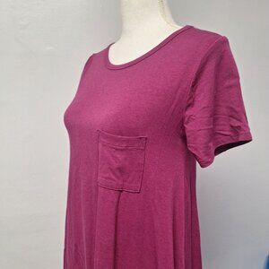Lularoe Burgundy Carly Dress Womens XS Tee Shirt Style Front Chest Pocket Knee