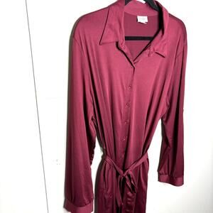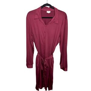 Lularoe Burgundy Ellie Shirt Dress Button Up Pockets Tie Waist Size XL New