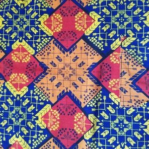 New with Tags. Never been worn(purchased wrong size). Smoke and pet free home. The color is blue with orange and yellow print, has small arrows in print.