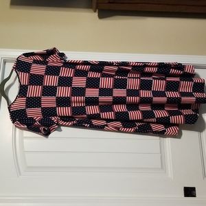High low hem short sleeves dress. Front pocket. The tags are with it but not attached. Pattern has red white and blue.