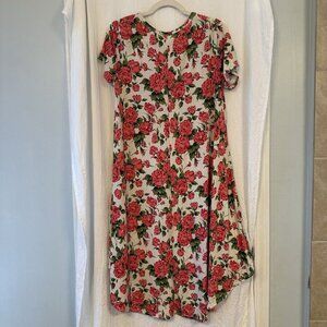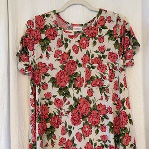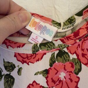 Lularoe Slinky Pink Roses Floral & White Carly Dress Size Small. Fits loose.