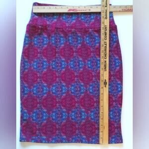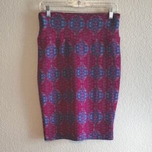 Lularoe Cassie Fuchsia Pink, Purple, Blue Geometric Stretchy Pencil Skirt S
