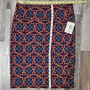 The elastic waistband and knee-length cut make this skirt both comfortable and stylish, while the pull-on closure adds to its convenience. Machine washable and suitable for all seasons, this skirt is a must-have addition to any wardrobe. Get ready to turn heads with this eye-catching skirt from LuLaRoe.