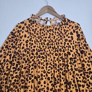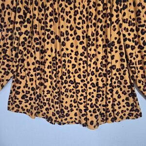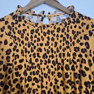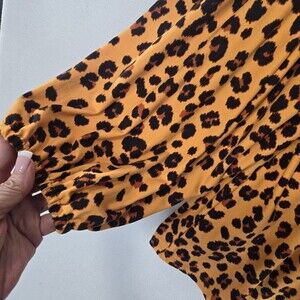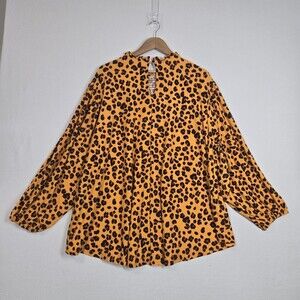Lularoe Clara Smock Blouse Sz 3L Orange Black Animal Print Keyhole Back Long Sleeve Ruffle neck