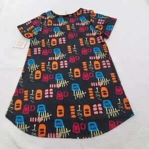 Lularoe Classic T L Black Mod Retro 90s 80s Blue Orange Geometric Short Sleeve