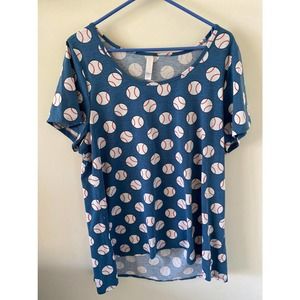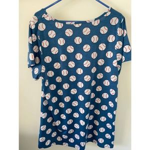 Lularoe Classic T UNICORN Tshirt Baseball print top Blue 2XL EUC