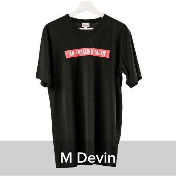 Lularoe Devin V-Neck Tee Fan-Freaking-Tastic - Size Medium