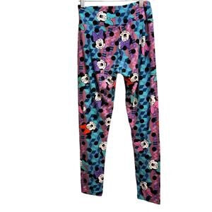Lularoe Disney One Size Leggings Minnie Mouse Bow Teal Pink Womens
