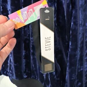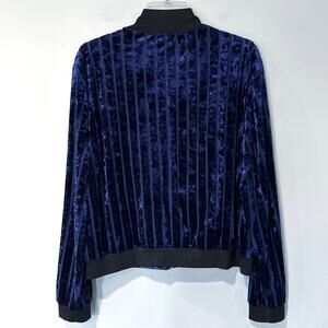 NWT Lularoe Elegant Stevie Bomber Jacket, track jacket, striped velvet burnout. Women's size large. Blue and black