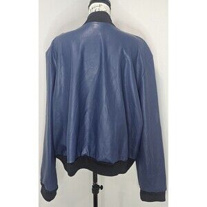Lularoe Faux Leather 3XL Stevie Bomber Jacket Blue Black Silver Zipper HTF New