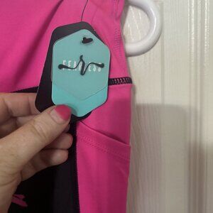 Lularoe Fearless Crop Fitness Athletic Leggings Large Black Pink Rose Print