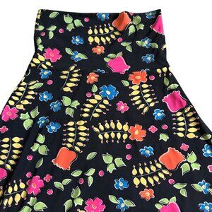 Lularoe Floral Maxi Skirt-Black W/ Neon Floral Pattern-XXS-GUC