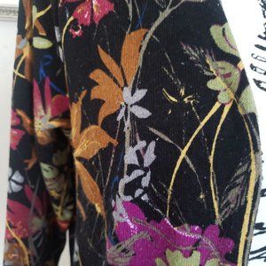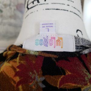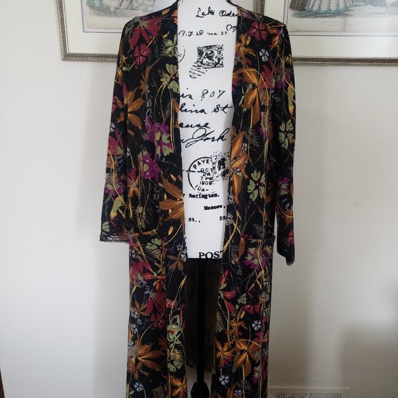 Black Lularoe Sarah duster cardigan with purple and gold floral accents. Size L, barely worn.