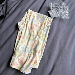 Pale yellow with Spring Time Floral Pattern in blue, pink, white and chartruse - perfect for Easter