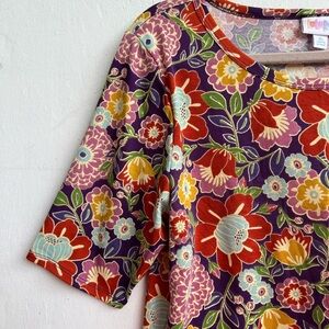 Lularoe Gigi Short Sleeve Top Purple with Retro-Inspired Florals Size XL NWT