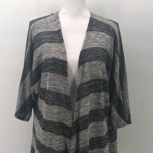 Gray horizontal striped open front cardigan from Lularoe. Gently used condition. Size Medium.