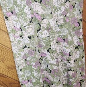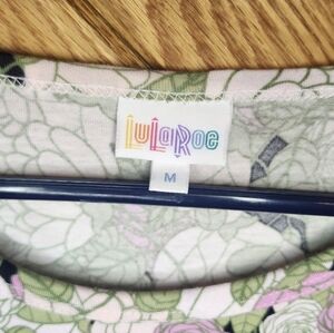 Lularoe Green, Pink, And Cream Floral Print Julia Bodycon Medium Dress. This just has a bit of very light pilling. Overall great condition. Knee length with medium length sleeves.