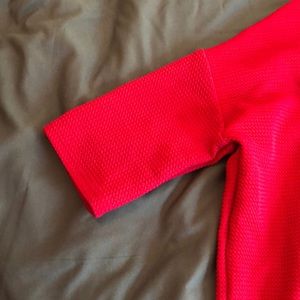 Dark pink lularoe Irma shirt. Worn once to try on. Great as a cover up by the pool or tied up with jeans or a skirt. Has no known snags. Brand new in great condition