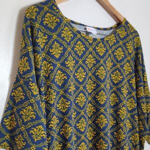 Lularoe Irma Elegant Blue and Yellow Patterned Women's Top