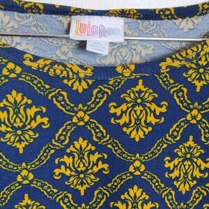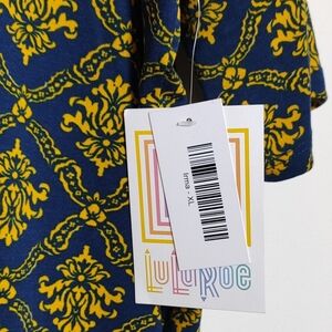 This stylish women's top features a vibrant blue and yellow pattern, perfect for any occasion. Its elegant design offers both comfort and fashion. NWT. Bundle with the other LuLaroe top in my closet for an excellent discount!
