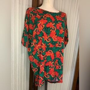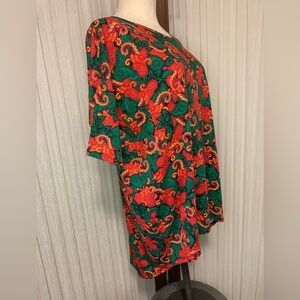 Lularoe Irma - Green Red Paisley Print Tunic Top - Size XS - NWT