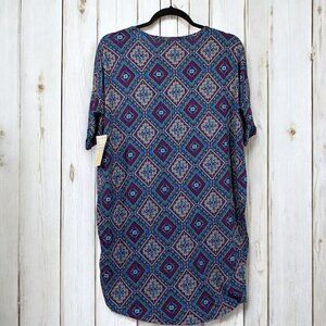 Lularoe Irma Half Sleeve Tunic High Low Polyester Blend Sz XXS Blue Red Diamond