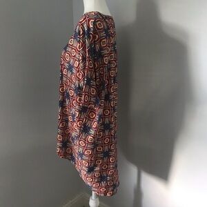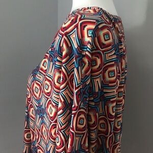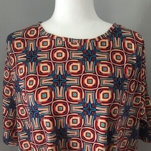 Size small Luluroe Irma tunic top. Shades of red, pink, blues & tan. Pretty design & combo of colors. Buttery soft.