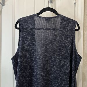 Lularoe Joy Vest Open Duster Size L Navy Blue Gray Side Slits Boho Sleeveless