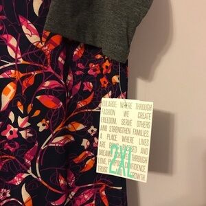 Lularoe Julia Floral 2XL dress w gray accent new with tags. Purple, orange and pinks floral. Has underlying rose pattern. Tropical print.