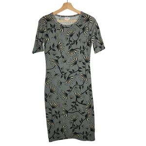 Lularoe Julia Gray Floral Short Sleeve Bodycon Midi Dress XS