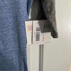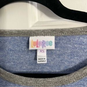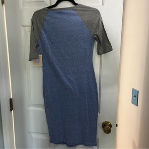 Lularoe Julia dress raglan style blue body gray sleeves size XS NWT
