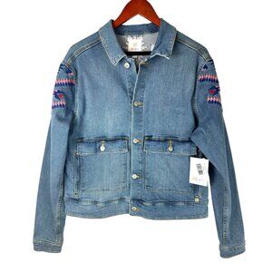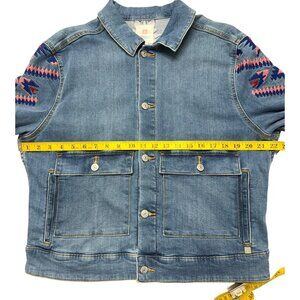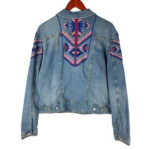 Lularoe Kenny Jacket XL Southwestern Aztec Embroidered Blue Stretch Denim