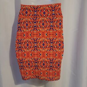 Lularoe LLR Cassie Pencil Midi Skirt Pull-On Abstract Tribal Boho Fall Print XS