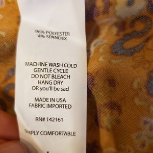 Lularoe Large Azure. Carmel background. Black design. Burgundy and yellow flowers. New with tags. Never worn. Smoke and pet free home. Reasonable offers welcomed.