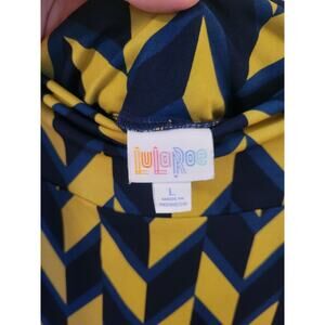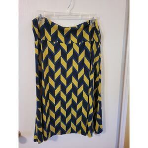 Lularoe Large Azure Skirt Chevron Navy Blue Yellow Knee Length