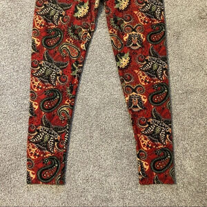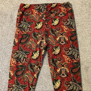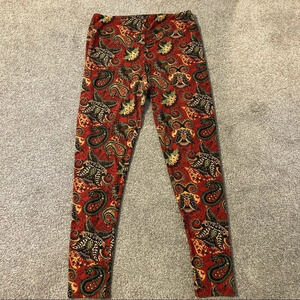 Lularoe patterned leggings in good pre-owned condition. I believe they are one size, however there is no size tag. The approximate measurements are in photos. From smoke free and pet free home.