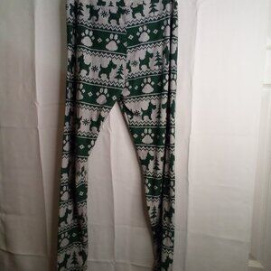 Lularoe Leggings Women Tall Curvy Plus Christmas Dogs Scottie Green White