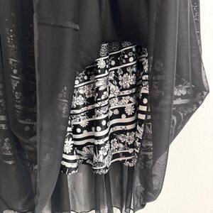 Excellent condition Lularoe Lola overlay midi skirt with white floral print design under a black sheer overlay, size XS. Very elegant! Only wore this once.