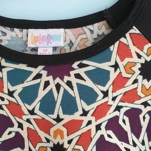 New with tags, a Medium Lularoe Randy tee. The body is multi colored and the sleeves are black. Smoke free home.
