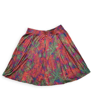 Lularoe Madison Box Pleats w/ Pockets Tropical Leaf Pink/Green Skirt Women Sz 3XL