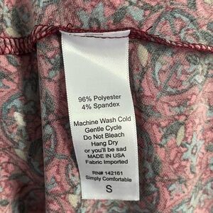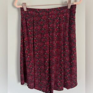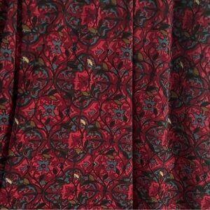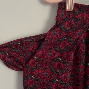 This Lularoe Madison is a comfy and cute skirt for your closet. It’s a vine pattern in dark red, dark teal, black, and dark taupe. It has hardly been worn. It has pockets!