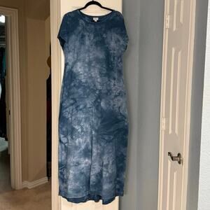 You'll love this beautiful LuLaRoe Maria maxi dress! The blue tie-dye pattern is eye-catching and unique, and the flattering fit will make you feel confident and comfortable. The thick, soft cotton fabric feels great against the skin and drapes nicely. It's also perfect for taller women. This dress is in excellent condition. Get ready to turn heads!
